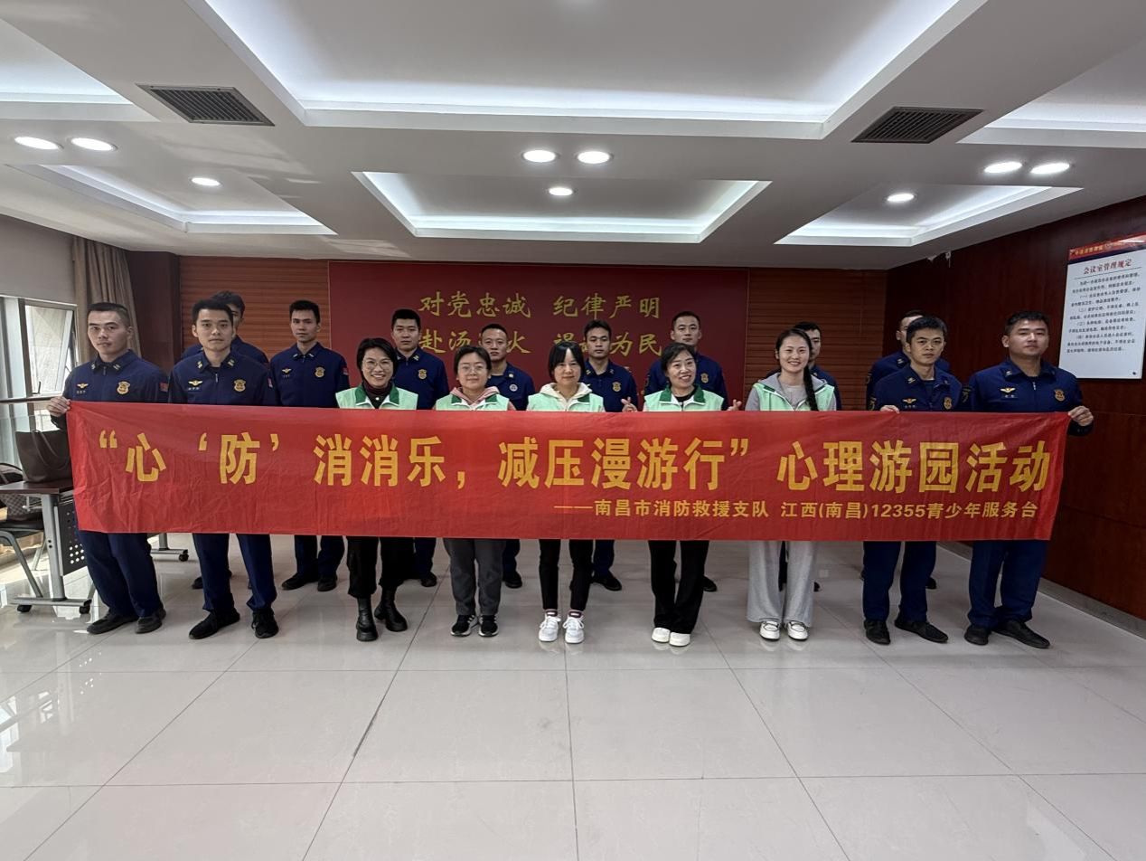 为守护消防指战员心理健康,筑牢应急救援“心理防线”,9月10日起,江西(南昌)12355青少年服务台(以下简称“12355 服务台”)启动“心‘防’消消乐,减压漫游行”系列心理游园活动,组织专业力量走进南昌市消防救援支队各队站。作为12355服务台的长期协作单位,学校团委积极响应活动号召,精心选派心理健康专职教师、国家二级心理咨询师海柳娟先后四次参与志愿服务,以专业服务为“蓝朋友”送上暖心心理关怀。